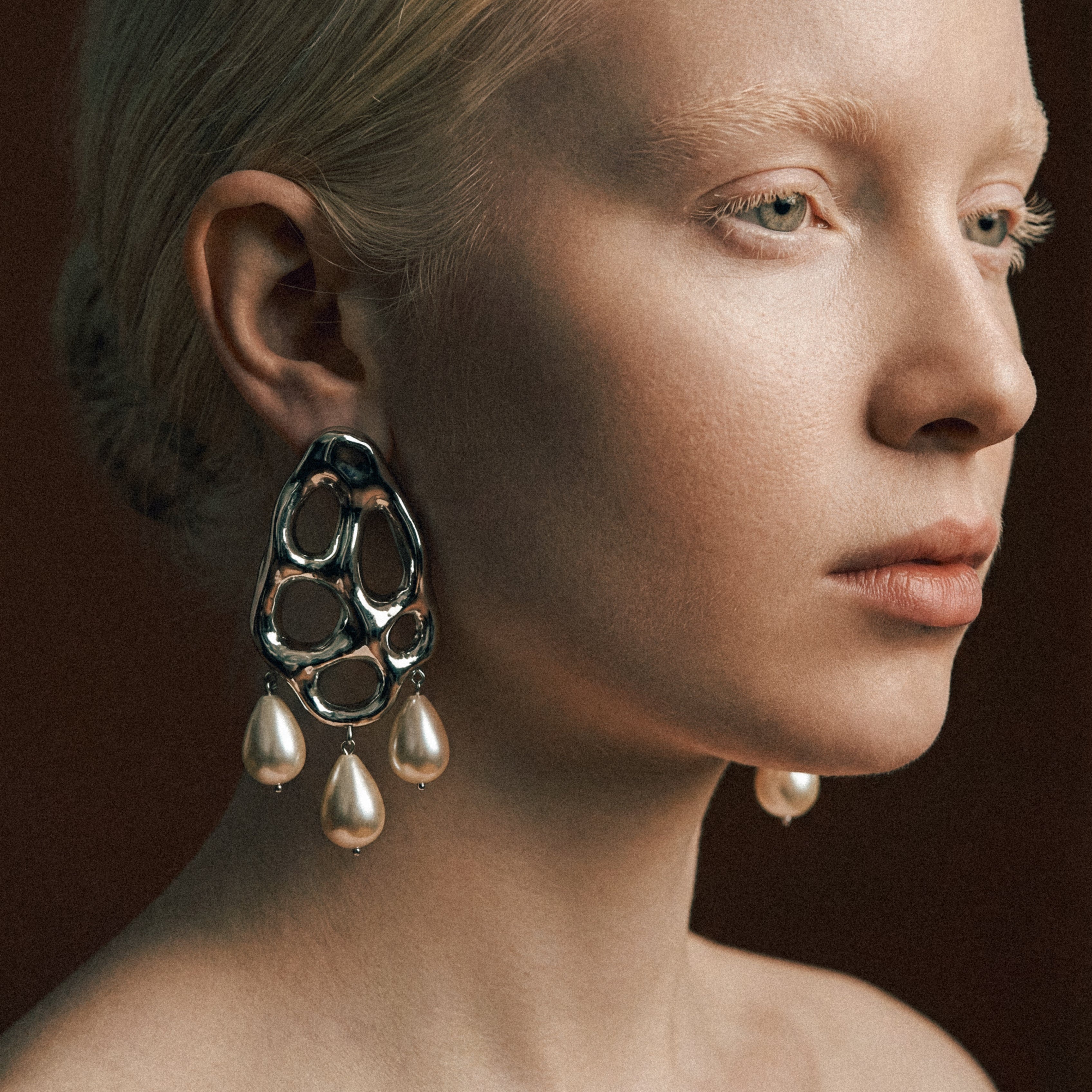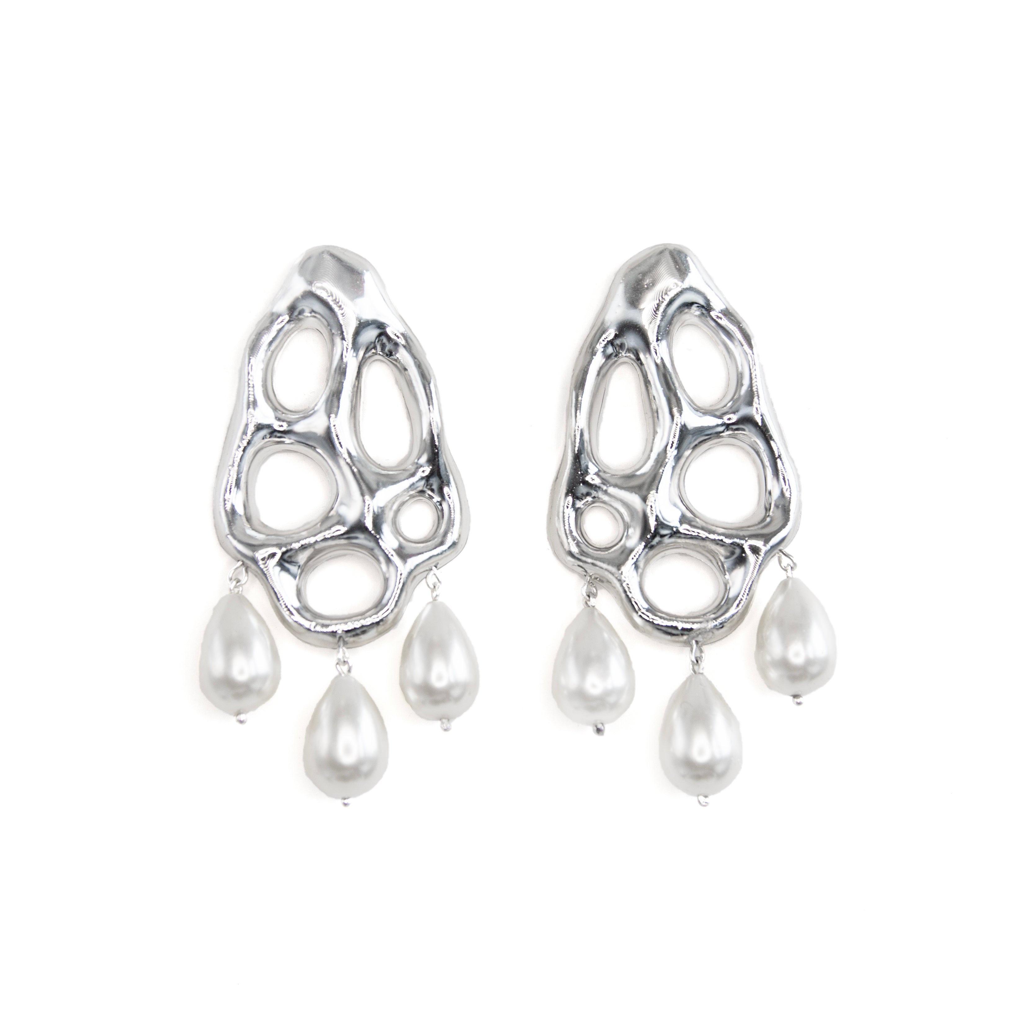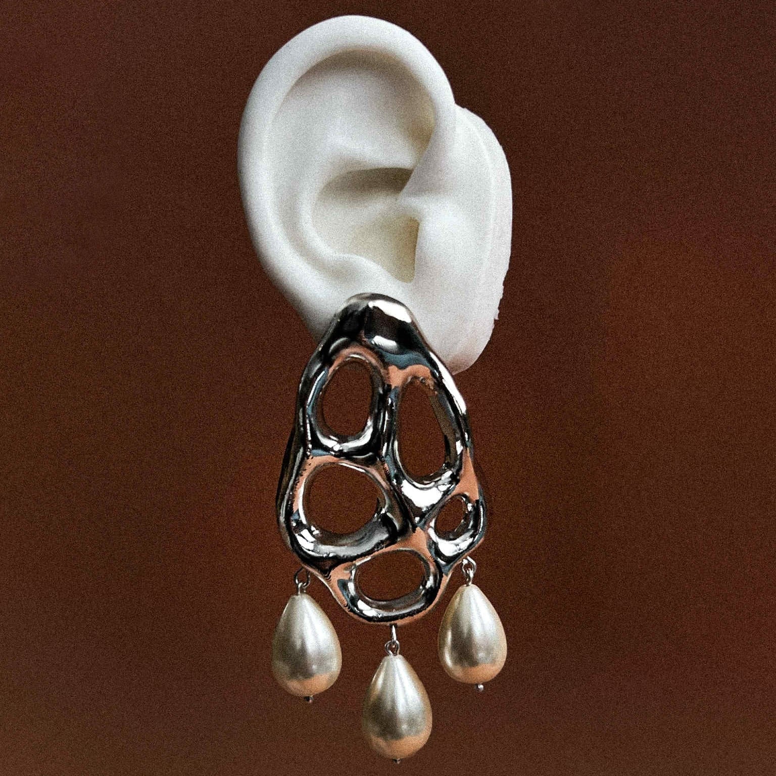 - Materials: freshwater pearls, chromed surface, silver pin, SDL